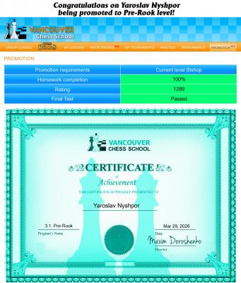 Vancouver Chess school is best chess academy in Vancouver. They have very talented staff. The events are well organized. They have excellent virtual chess platform. I am glad that we enrolled our chi...